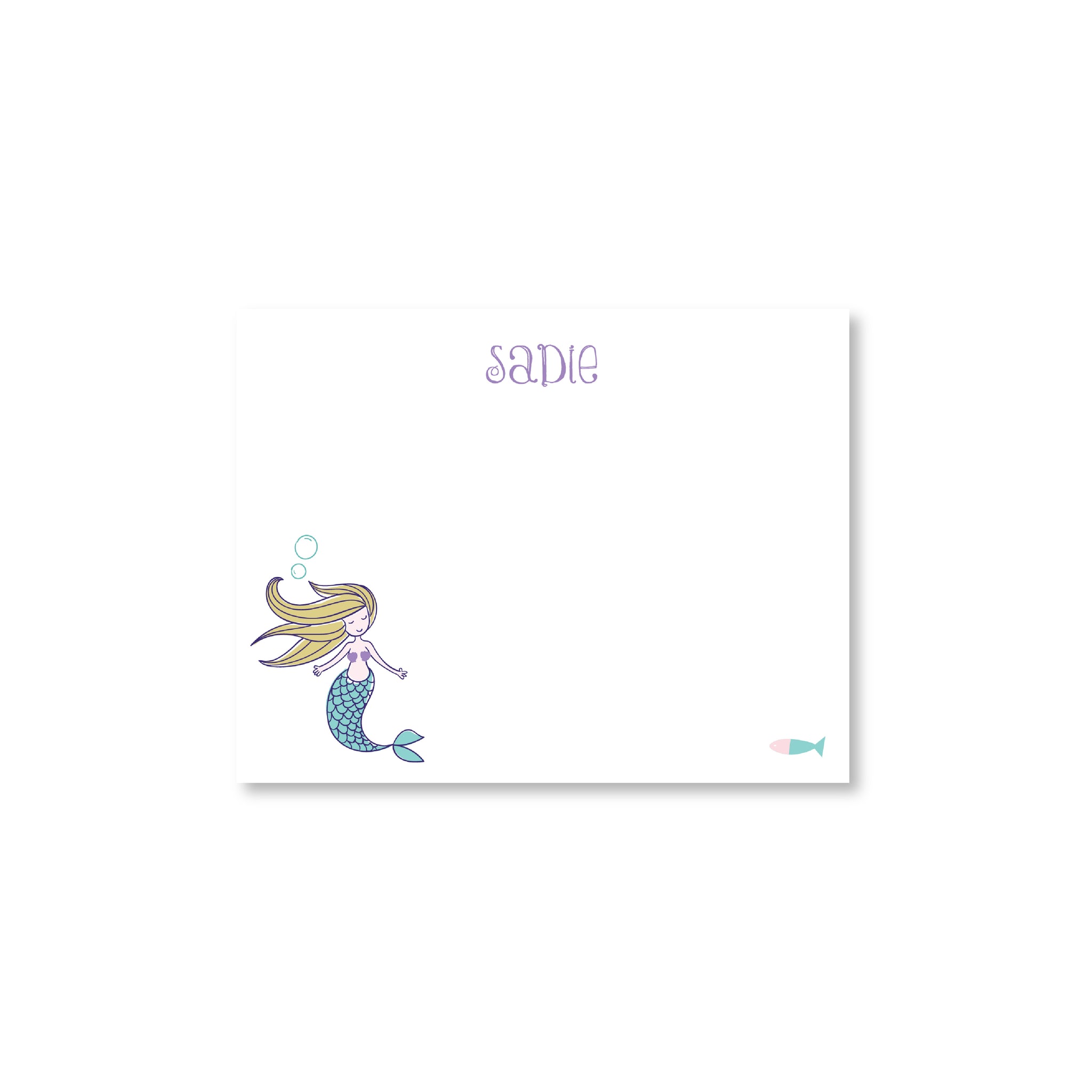 - mermaid's skin & hair color can be personalized (if no instruction is given, the note cards will be printed with light skin and red hair) / box of 10 has light skin with red hair