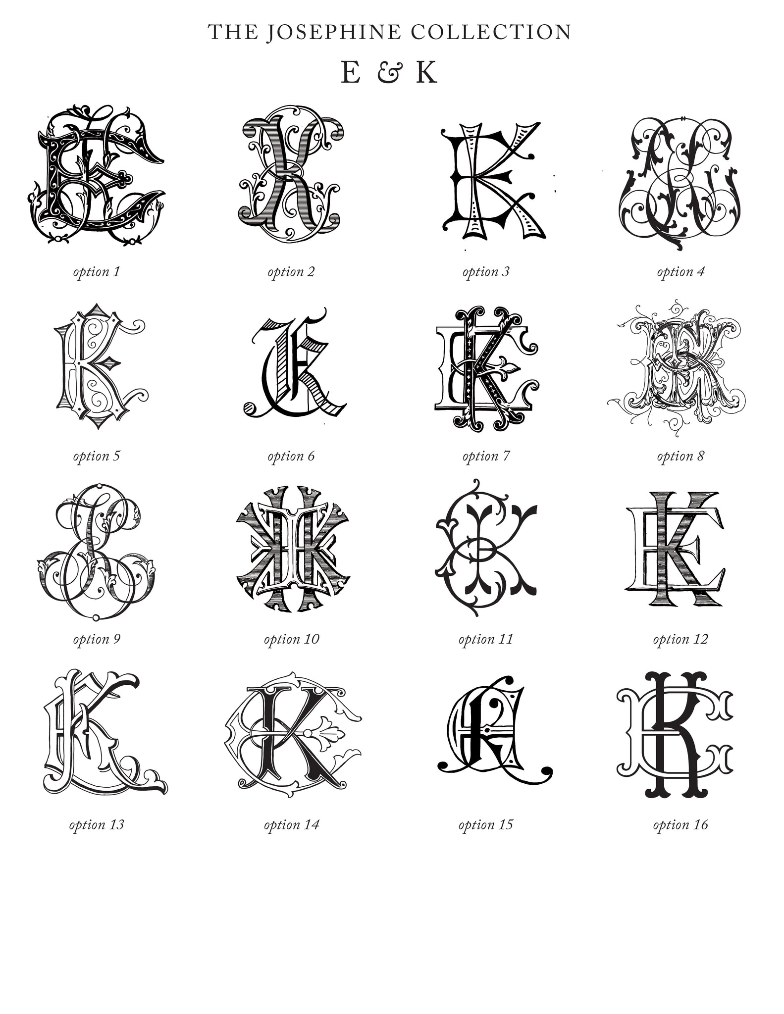 2. enter your initials, for example: E K - This can be either the woman & man's duogram or someone's first & last name! We will email you all the available options for your letter combination within 24 hours; you will need to email us back the option you prefer. Please indicate if you want the date added.